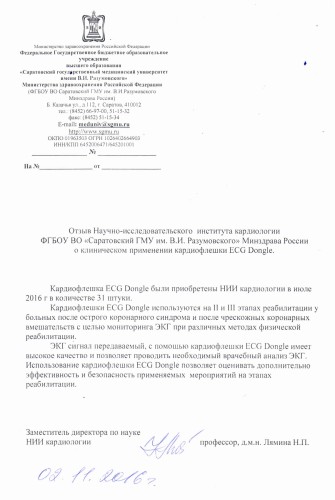 Кардиофлешка ECG Dongle позволяет снять точную электрокардиограмму по 6 отведениям, с помощью мобильного приложения и облачного сервиса «КардиоОблако» легко отправить ее на автоанализ или на расшифровку врачу-кардиологу, быстро получить ответ о состоянии сердечно-сосудистой системы.