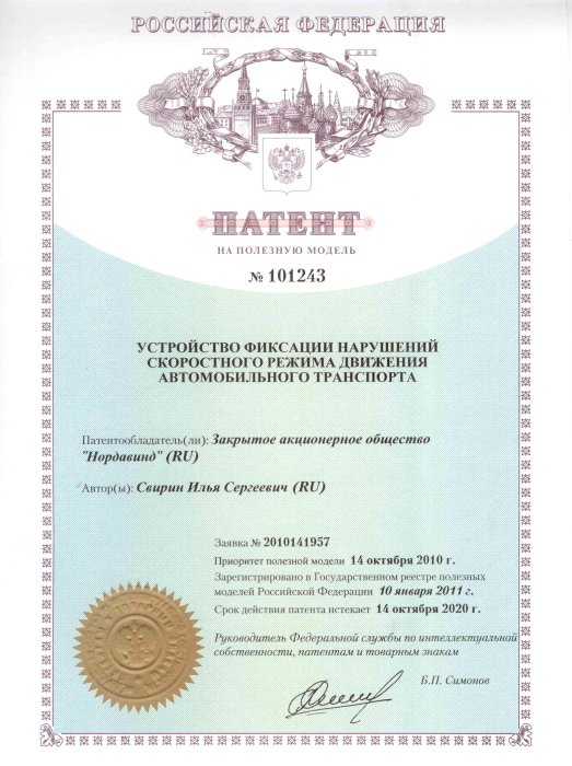 ЗАО «Нордавинд» получило патент на устройство фиксации нарушений скоростного режима движения автомобильного транспорта.