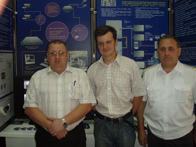 Справа налево: начальник научно-исследовательского центра  «Охрана» полковник Н. В. Будзинский, генеральный директор компании  «Нордавинд» И. С. Свирин, начальник отдела научно-исследовательского центра  «Охрана» А. П. Радченко