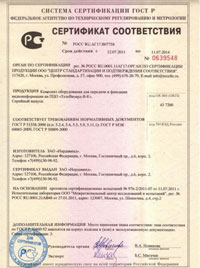 Сертификат соответствия ПЦО «ТелеВизард-В-К» требованиям российских стандартов №0639548