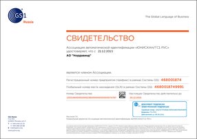 Свидетельство №4 о внесении в реестр надежных поставщиков города Дубны