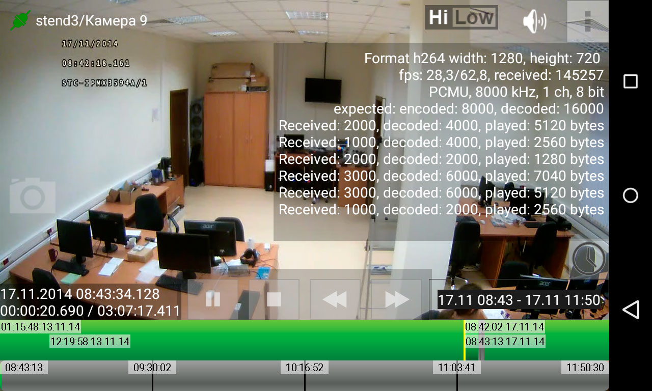 Особое внимание при создании приложения было уделено синхронизации воспроизведения звуковых и видеоданных. Приложение поддерживает работу со всеми аудио кодеками используемыми в современном IP-оборудовании видеонаблюдения!